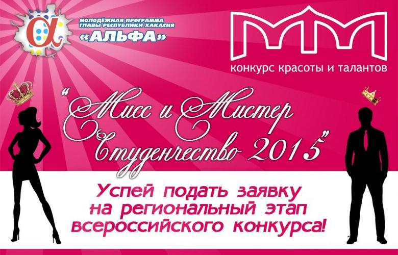Молодежная программа Главы Хакасии «АЛЬФА» уже объявила о приеме заявок от студентов на участие в региональном конкурсе «Мисс и Мистер Студенчество - 2015». Как говорилось ранее - победительница республиканского конкурса будет представлять всё студенчество Хакасии на общероссийском конкурсе «Мисс Студенчество России - 2015».