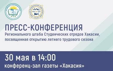 30 мая 2017 года (вторник), в 14.00 ч. в конференц-зале «Газеты «Хакасия» (г. Абакан, ул. Щетинкина, 34) состоится пресс-конференция Хакасского регионального отделения Молодежной общероссийской общественной организации «Российские Студенческие Отряды», посвященная открытию летнего трудового сезона студенческих отрядов Хакасии.