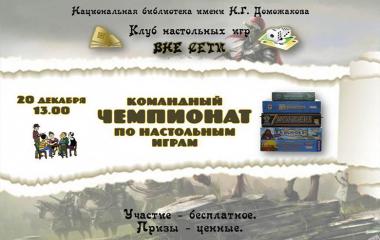 20 декабря клуб настольных игр "Вне сети", который находится в Медиа-центре Национальной библиотеки им. Доможакова, проведет первый в Хакасии чемпионат по настольным играм. Участие - абсолютно бесплатно, победители же получат ценные призы и подарки. Спешите подать заявки, друзья!