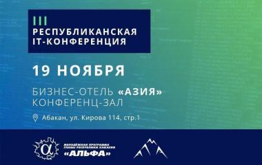 19 ноября 2016 г. в г. Абакане в конференц-зале бизес-отеля "Азия", в рамках молодежной программы Главы Республики Хакасия «АЛЬФА» состоится третья республиканская IT-конференция.
