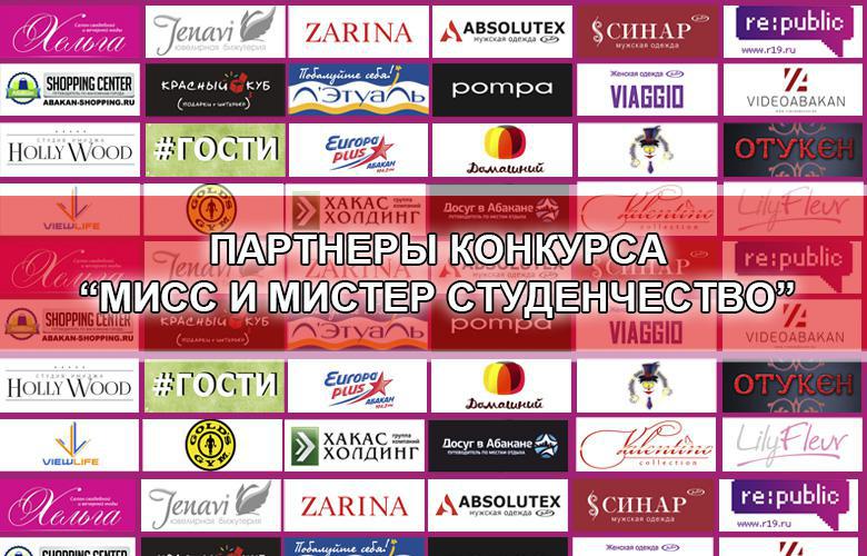 Список партнеров конкурса "Мисс и мистер студенчество - 2014" получился не маленьким. Дорогие участники, вот они, те, без кого наш конкурс не мог бы состоятся. Именно эти замечательные компании и фирмы дарят нам праздник. Огромное им за это спасибо!