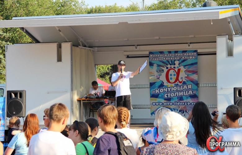 В столице Хакасии состоялся яркий молодежный open air «Кочующая столица». Первомайская площадь буквально взорвалась красками, наполнилась улыбками, музыкой, смехом детей и конечно, активной, творческой молодежью. Для проведения фестиваля под открытым небом активисты Молодежной программы Главы Хакасии «Альфа» разместили на площади не только необычную сцену-автомобиль, но и многочисленные площадки с мастер-классами на любой вкус. Open air собрал на главной площади республики более шестисот человек.