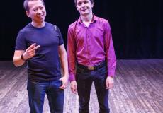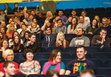 После выхода на сцену гостей из Красноярска и их приветствия, ребята из «Плохой компании» предложили абаканским шутникам сыграть разминку. Вопросы от зрителей посыпались один за другим. Спрашивали и о личном, например, как дождаться парня из армии, и о новогодних праздниках, и о том, куда же подевался в Хакасии снег.