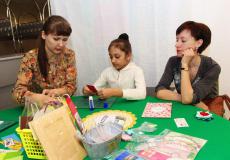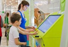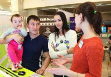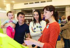 На первом этаже Драматического театра организаторы расположили выставку-продажу товаров и услуг для детей и их родителей, в рамках которой прошла акция «Семейная марка».