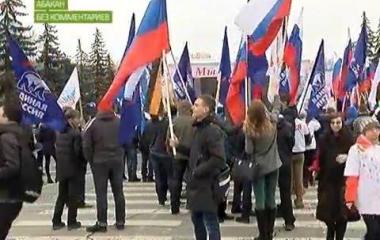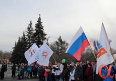 Сегодня на Первомайской площади Абакана состоялся митинг-концерт, посвященный второй годовщине воссоединения Крыма с Российской Федерацией.