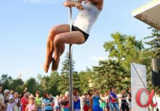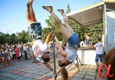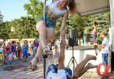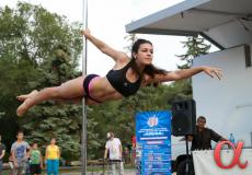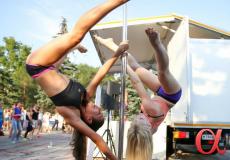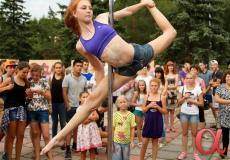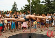 Продолжили программу фестиваля участники студии воздушного эквилибра "DIO-студио" - профессионалы в области шестовой акробатики. Причем не только девушки, но и юноши показали, что шест или как он правильно называется "пилон", может стать отличным спортивным снарядом.