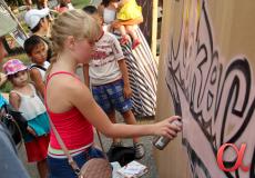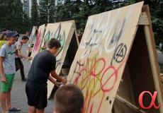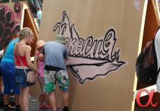 располагались различные площадки. Здесь можно было поучиться рисовать граффити,