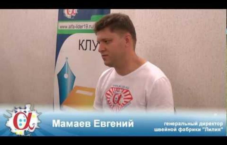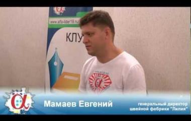 Одним из гостей форума «Кочующая столица» является молодой предприниматель - Мамаев Евгений Владимирович, который возглавляет несколько компаний - ООО «Стек», еженедельный журнал «Телесемь-Абакан» и швейную фабрику «Лилия».